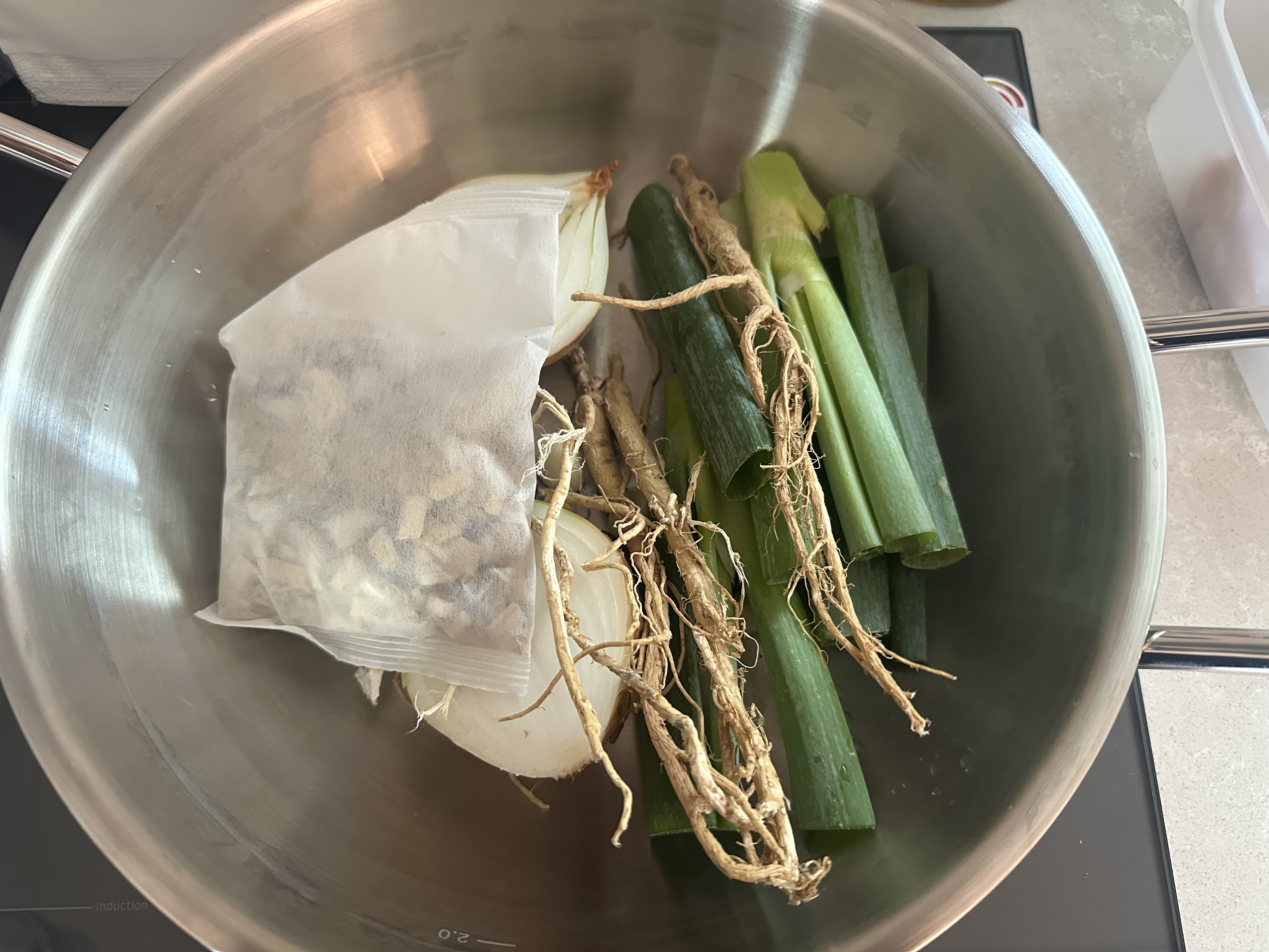 삼계탕 재료를 냄비에 넣고 국물 낼 준비를 한다.