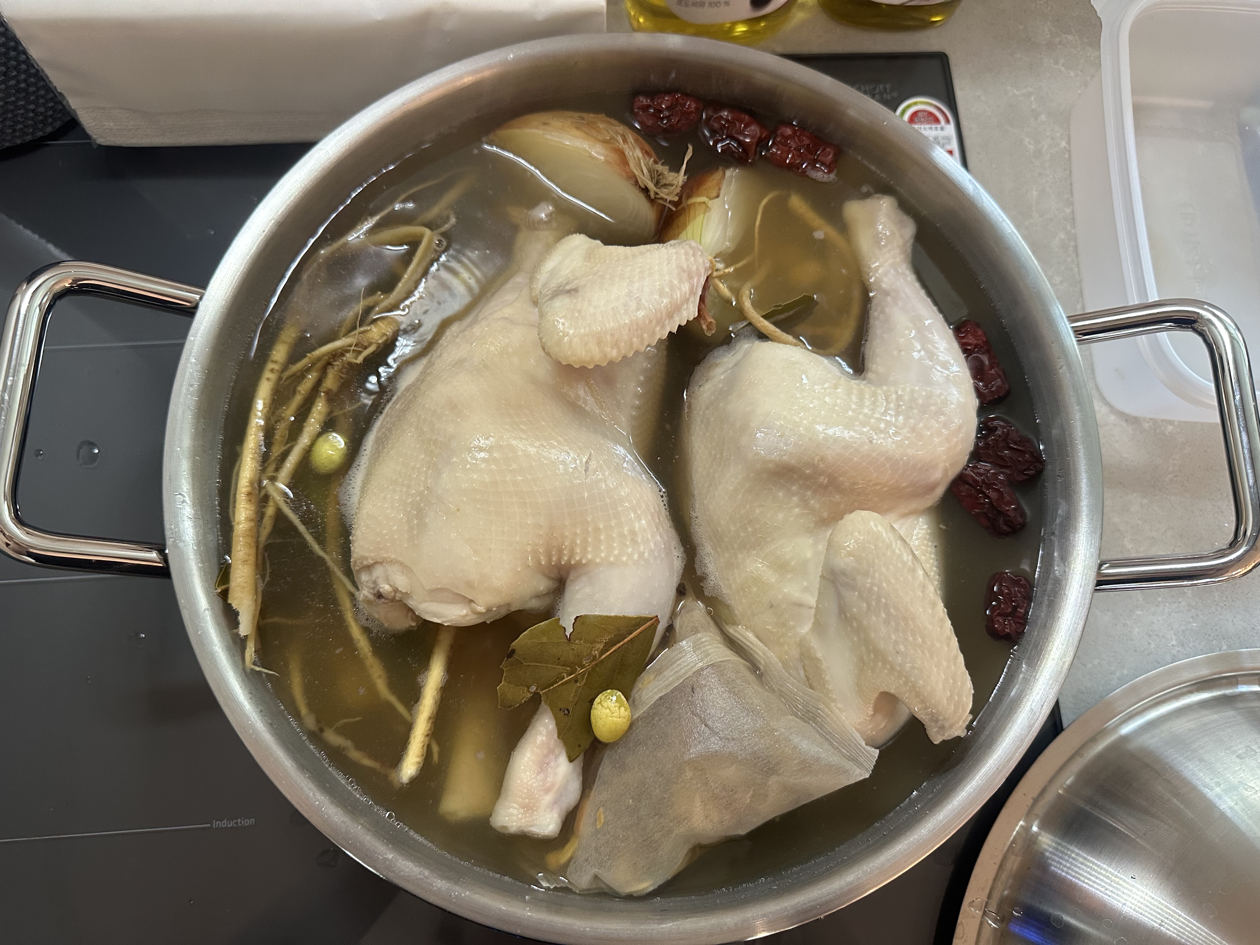 토종닭 사 왔으면 잘라서 넣거나 했을 듯.