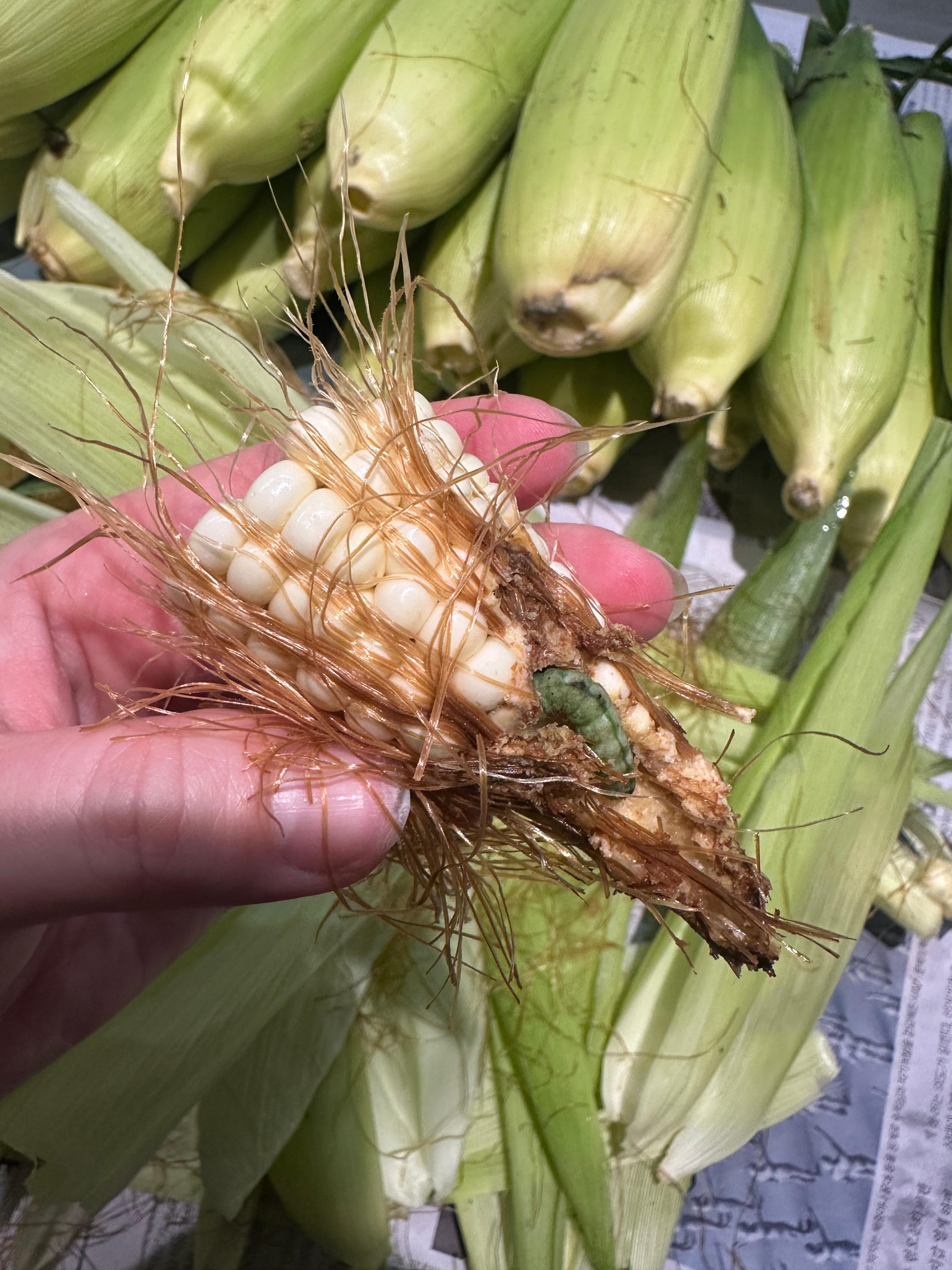 옥수수 하나엔 꿈틀이도 한 마리 같이 왔다.