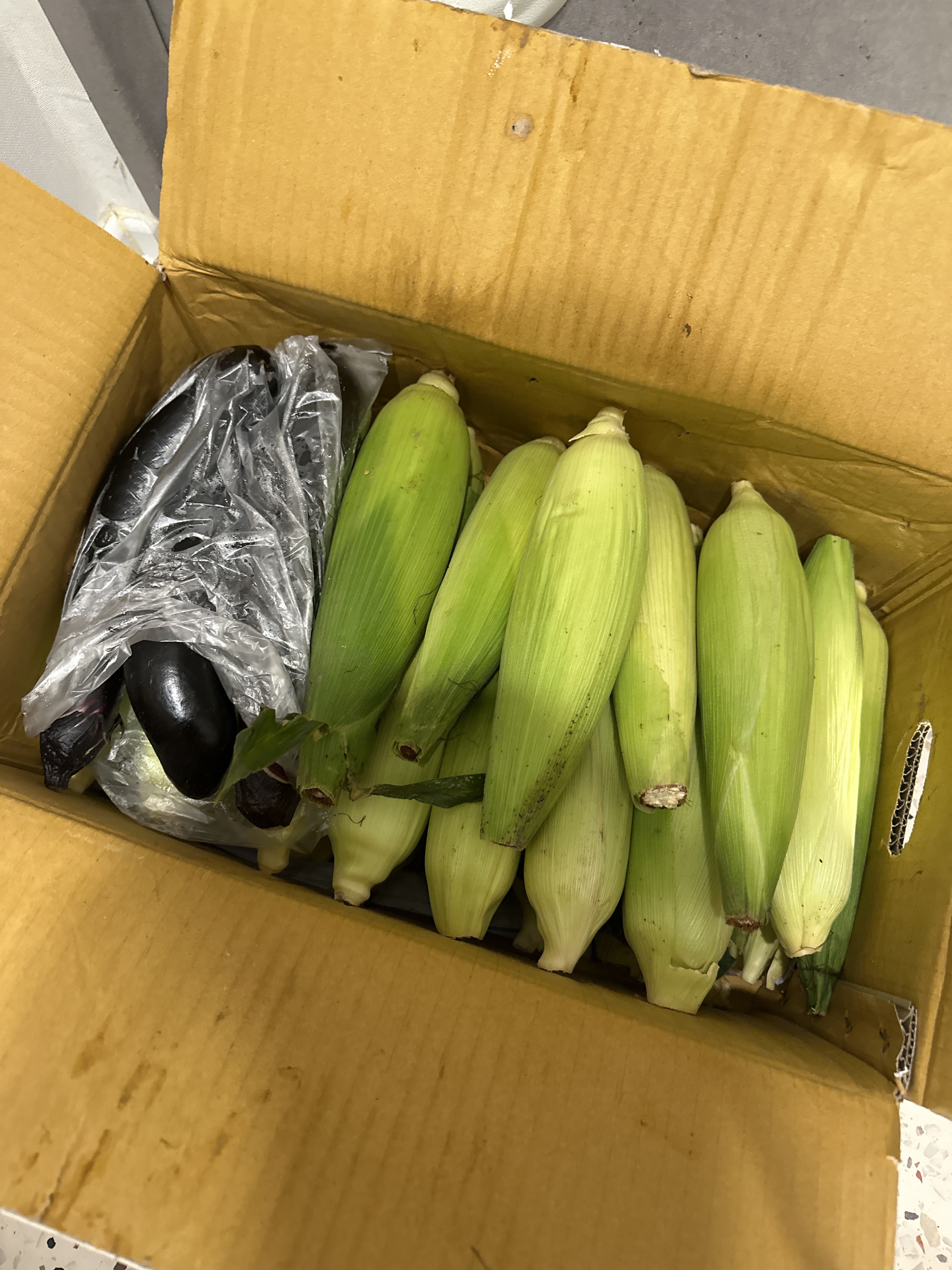 옥수수 박스에는 서프라이즈 선물로 가지도 몇 개 같이 들어있었다.