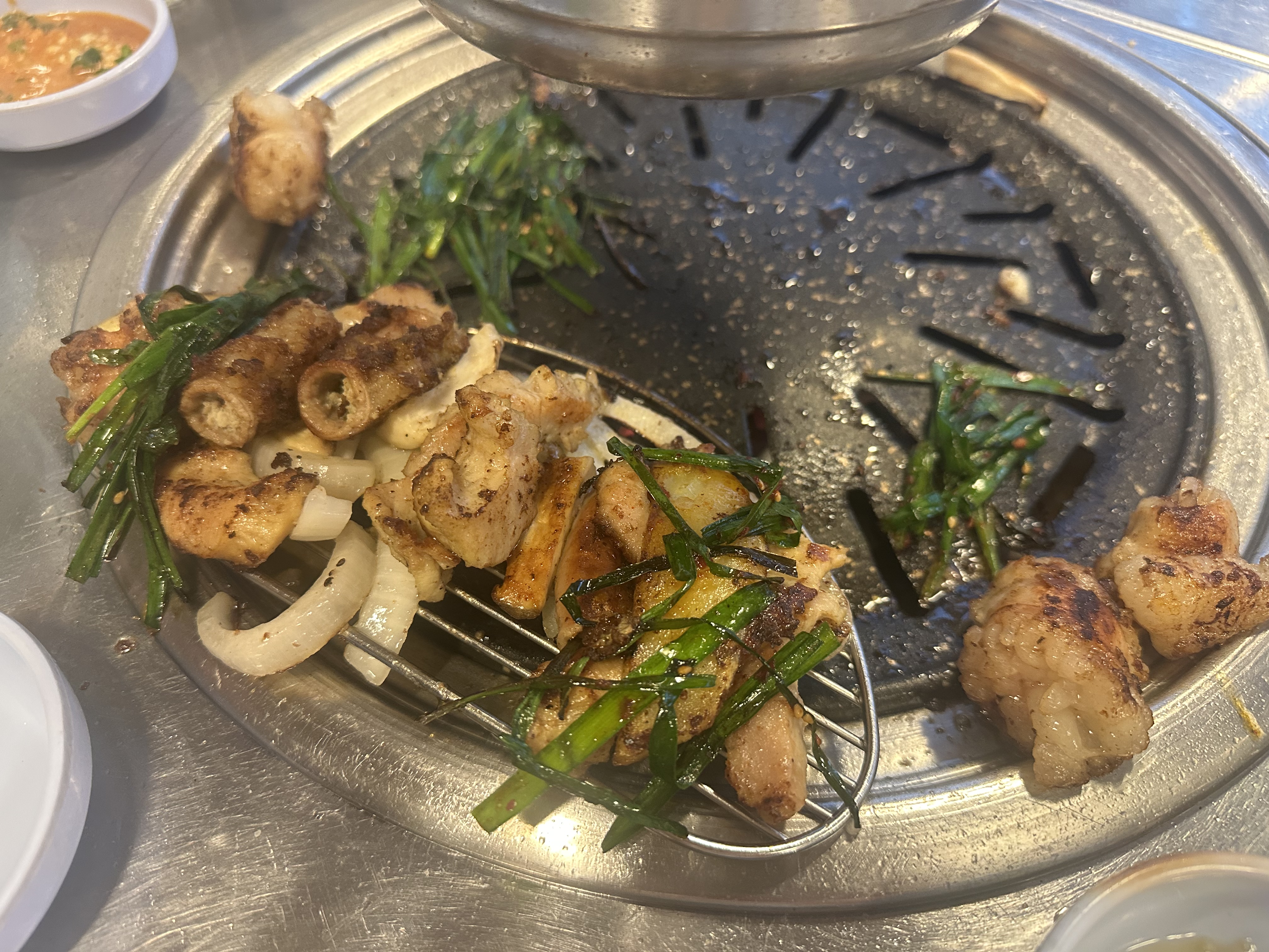 새콤매콤 양념된 부추를 구우면 단맛이 살짝 올라와 곱창이랑 참 잘 어울린다.
