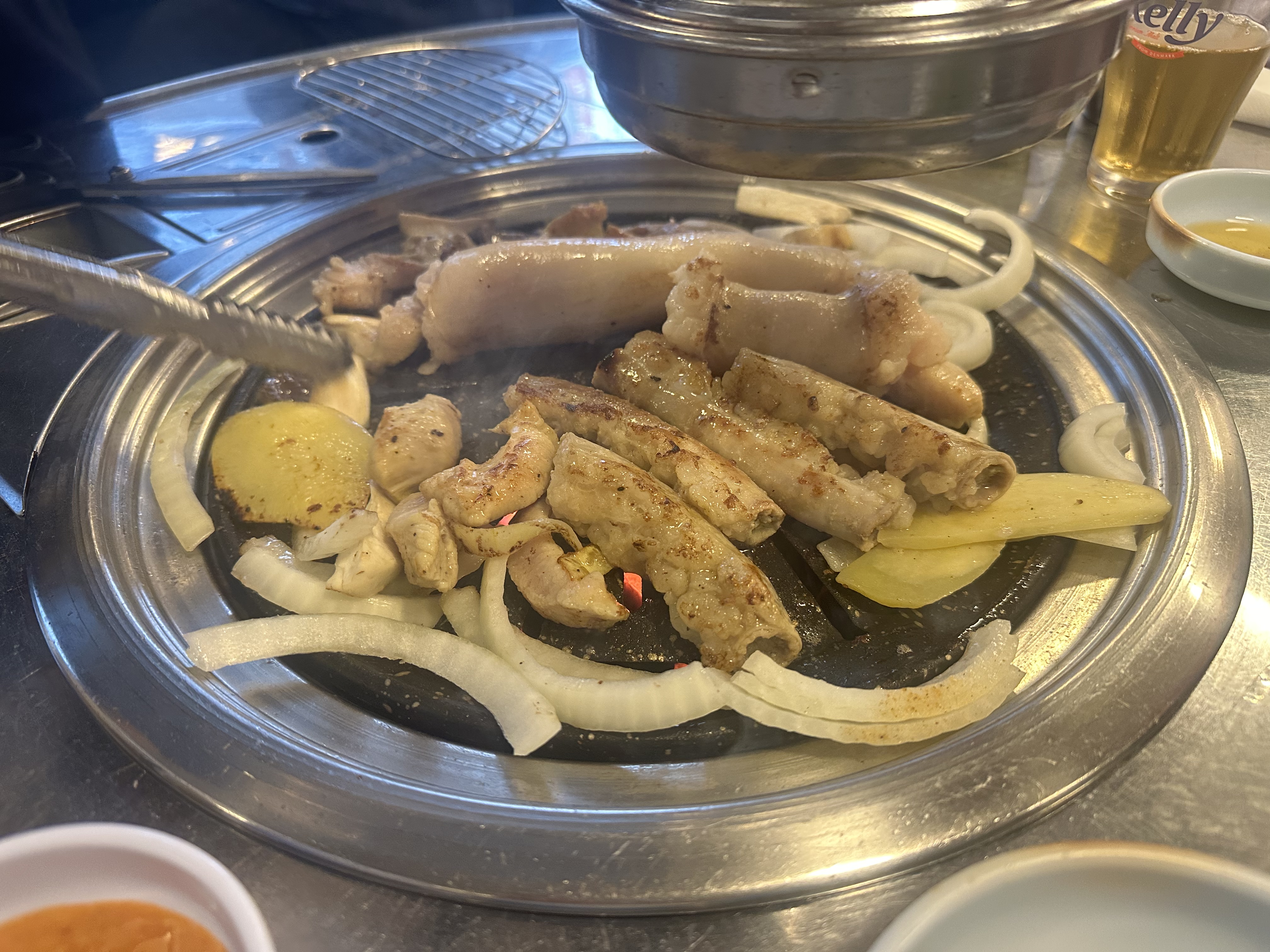 맛있어 보이는 고기와 함께 양파랑 감자도 나온다.