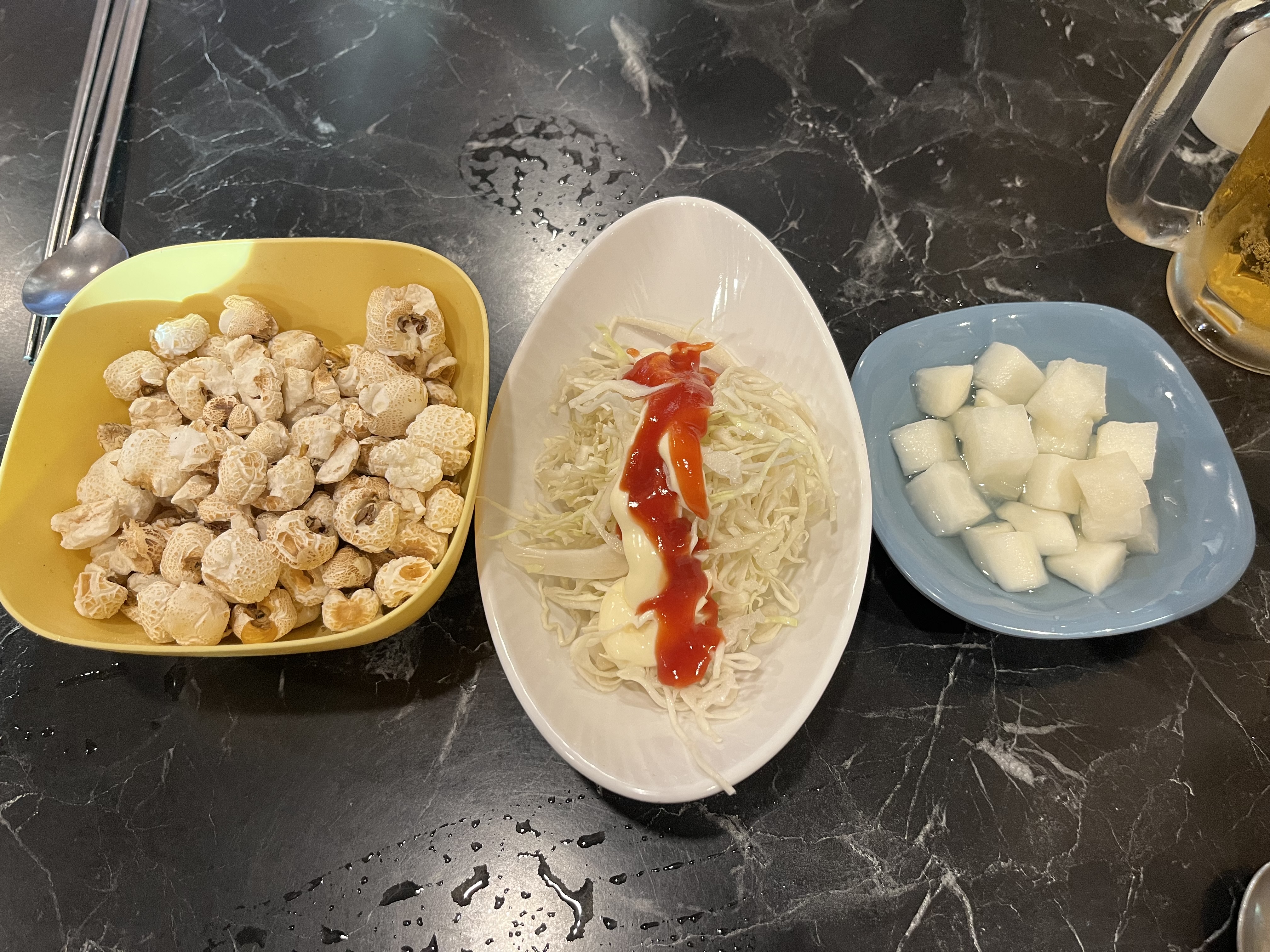그리고 전통적인 치킨집의 근본인 케첩과 마요네즈로 양념한 양배추 샐러드.