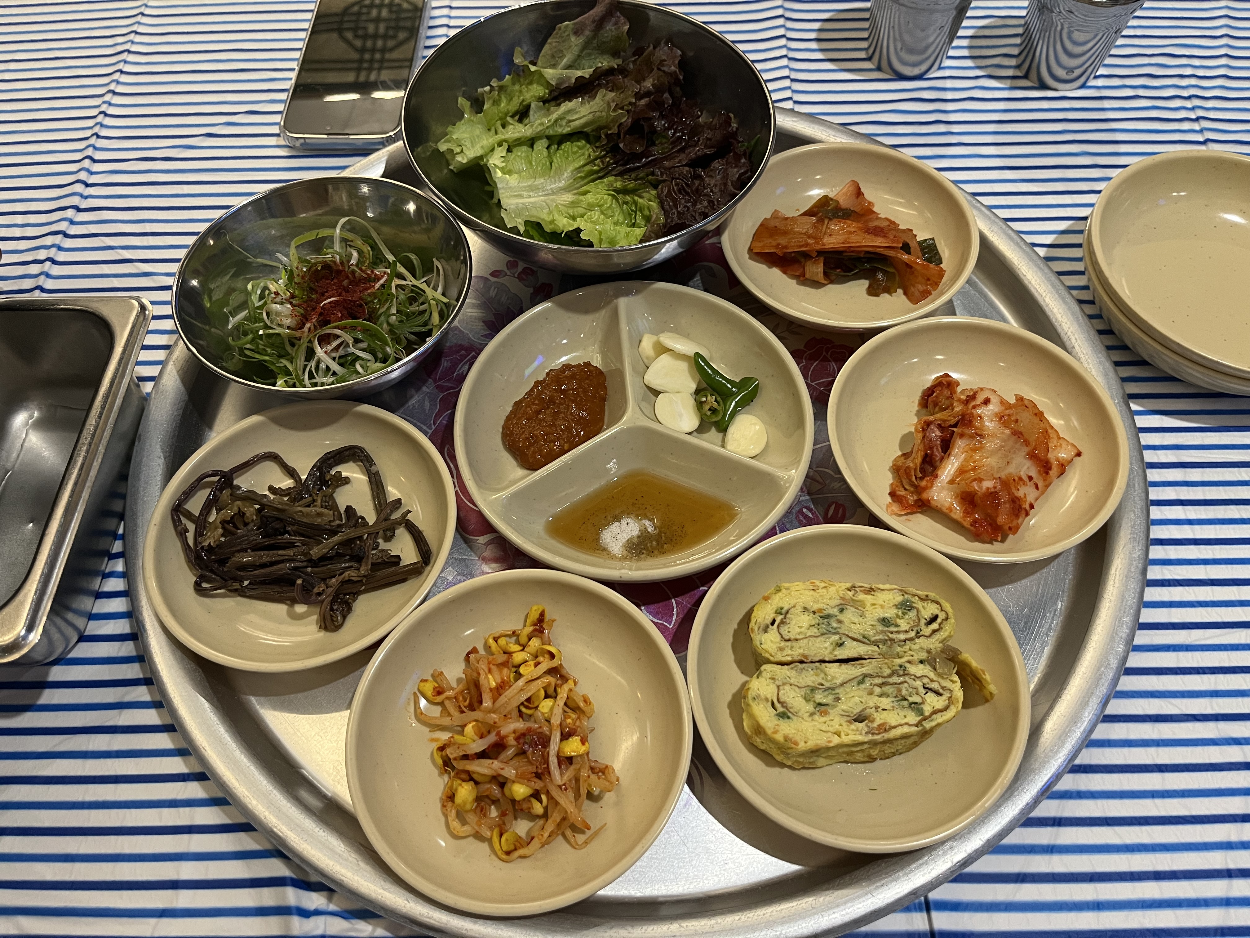 파무침이랑 배추김치, 고사리랑 콩나물도 있다.
