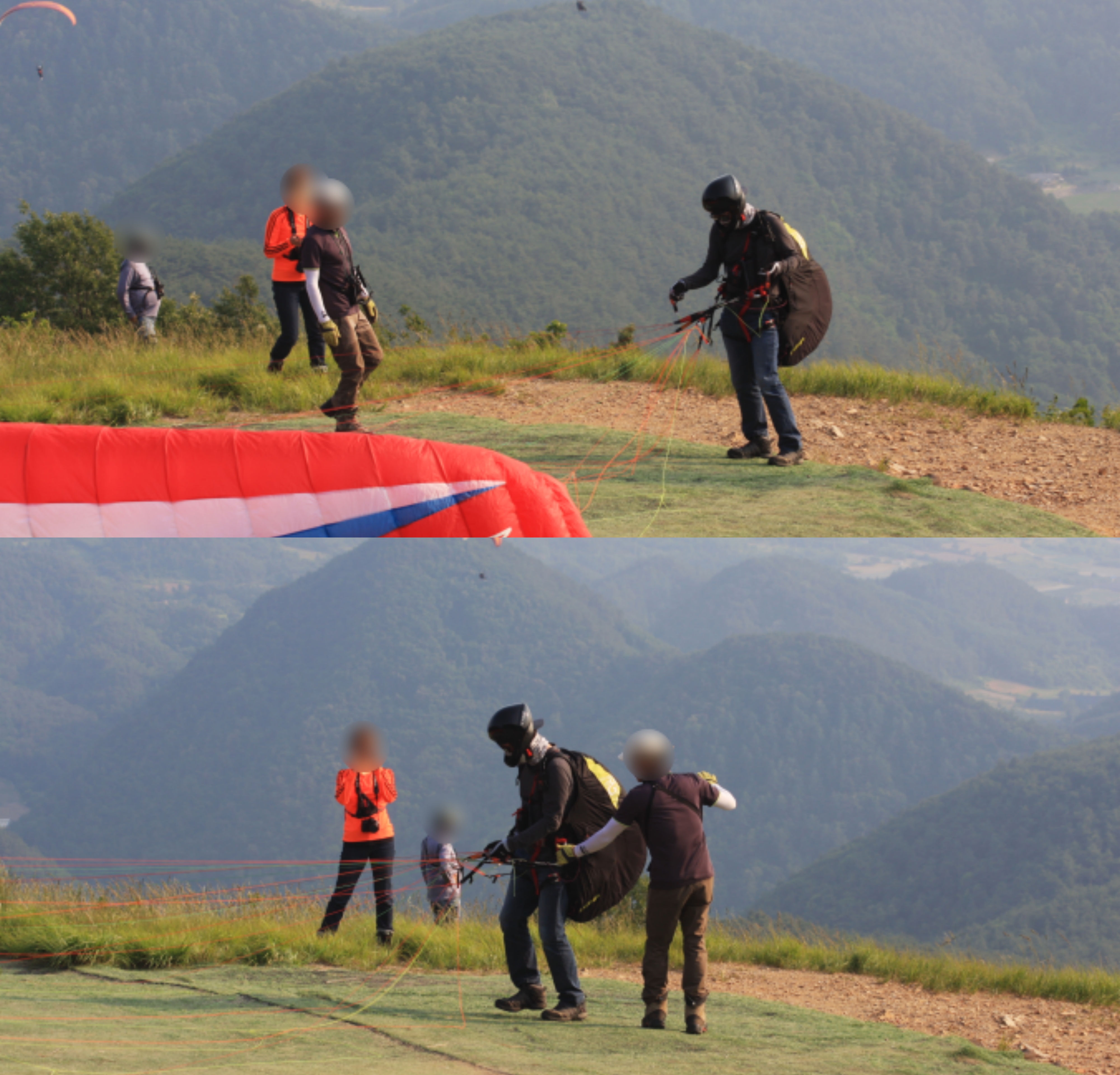 패러글라이딩 체험인 텐덤비행을 준비하는 기체도 보인다.