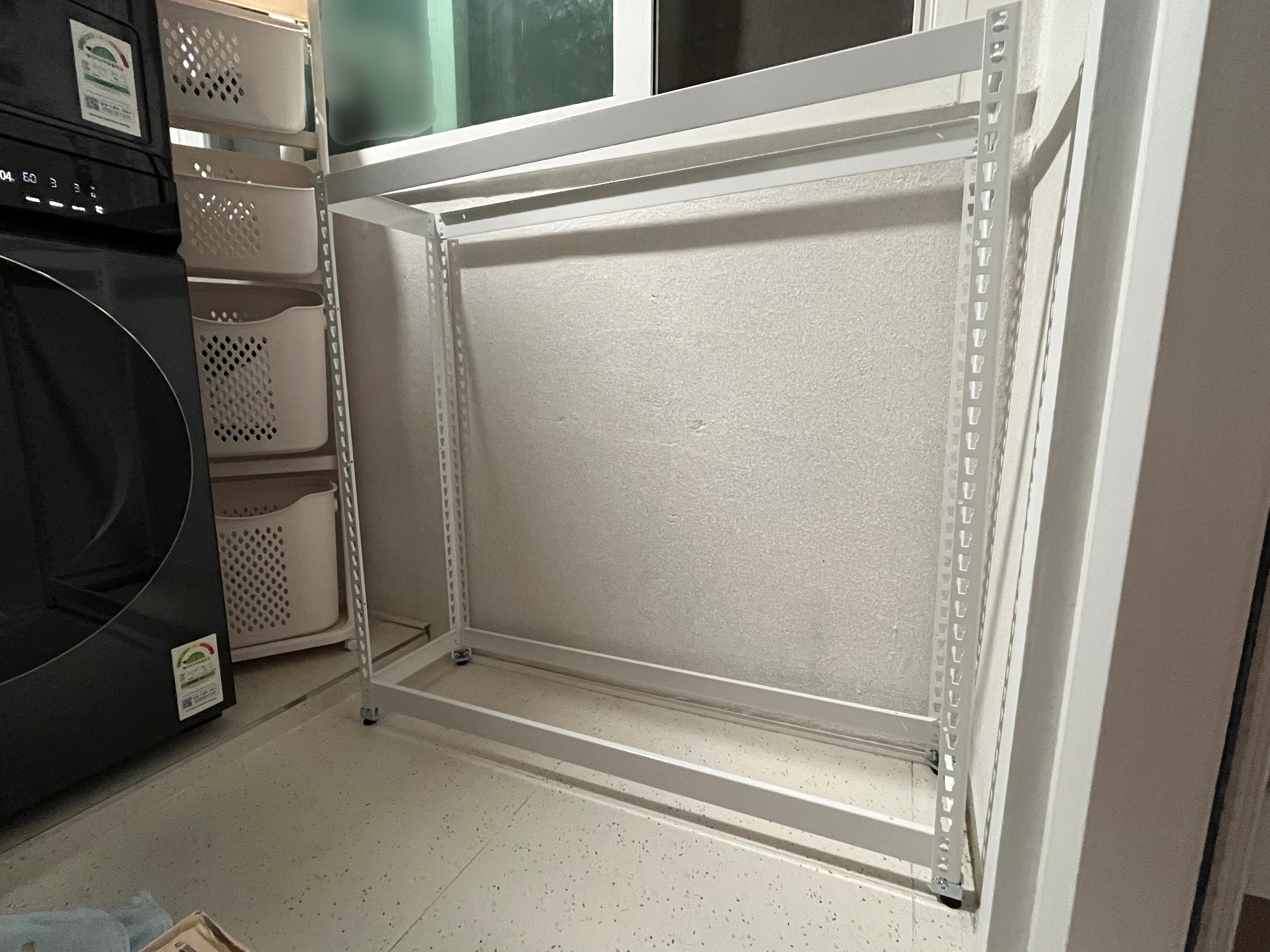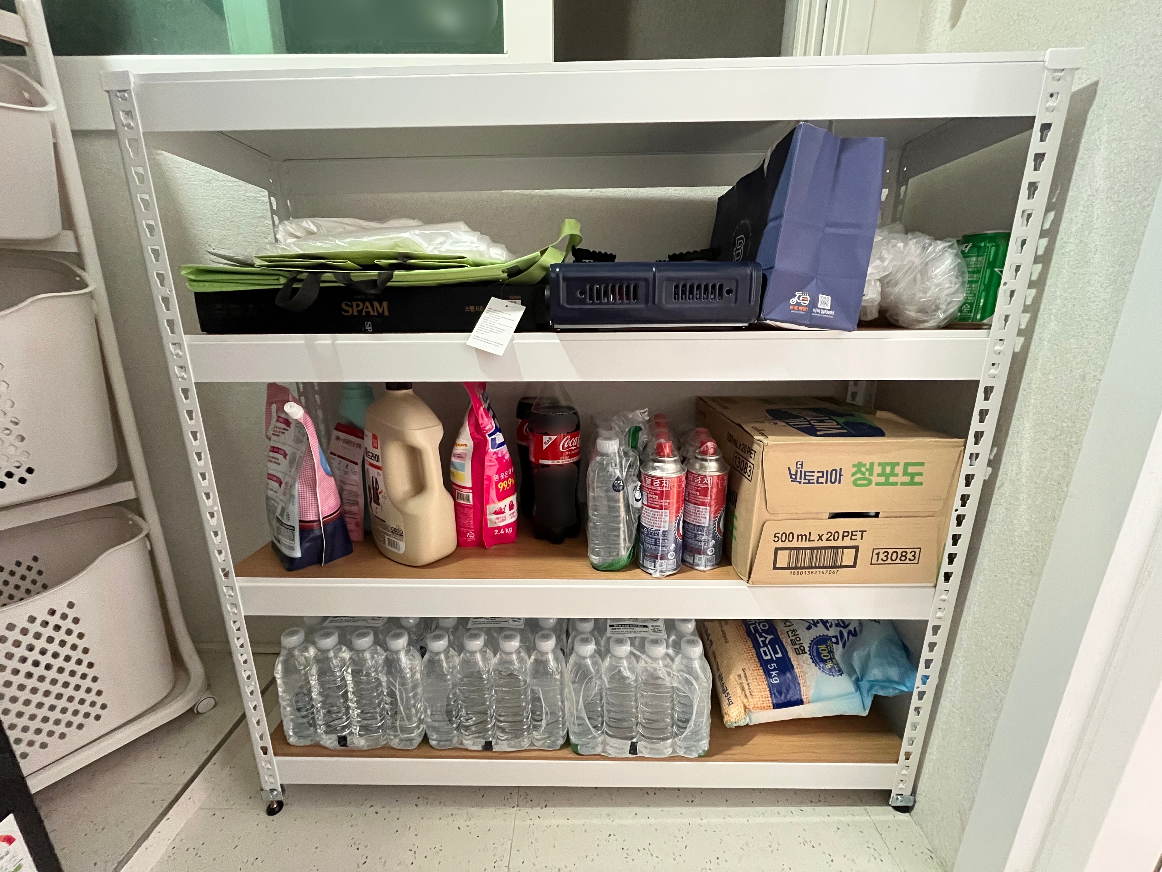 부모님이 철제선반으로 주방 베란다 수납공간을 정리해 놓은 걸 봤다.