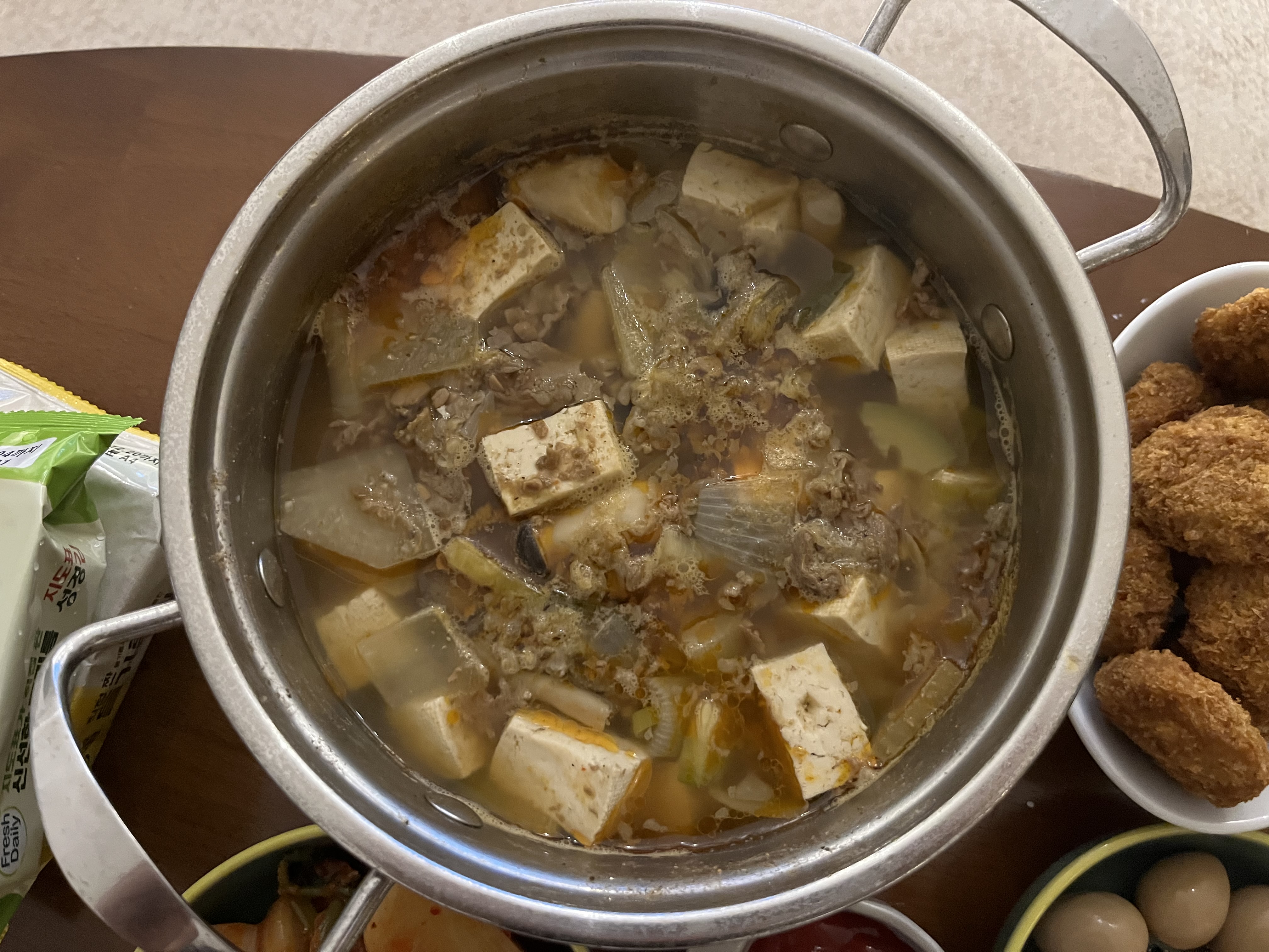 내가 좋아하는 두부가 듬뿍 들어있는 구수한 된장찌개.