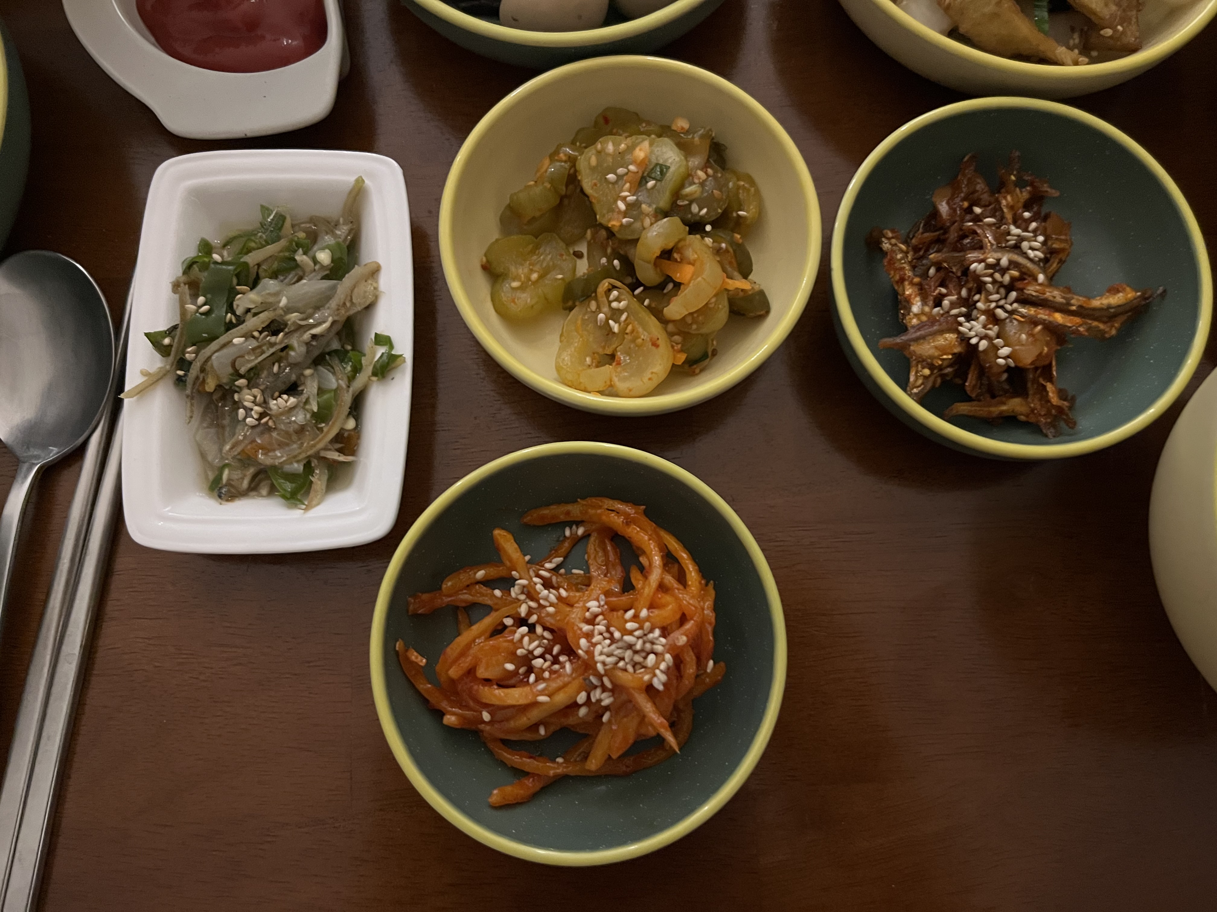 맛있는 반찬들의 냄새에 담아내면서 하나씩 집어먹어본다.